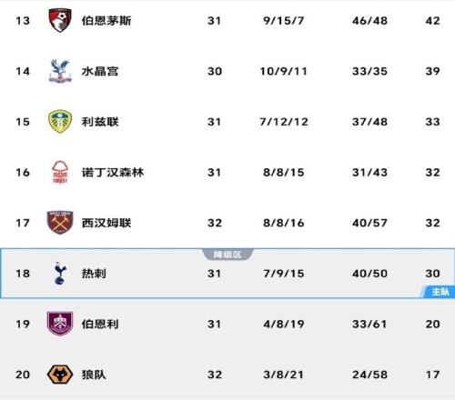后穆里尼奧時(shí)代熱刺沉淪,13輪不勝跌入降級(jí)區(qū),阿森納奪冠成反差